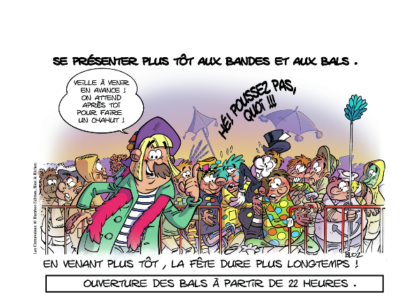Afin d’éviter des files d’attente trop longues aux abords du périmètre de sécurité du fait du renforcement des contrôles et des palpations, il est conseillé aux carnavaleux d’arriver en avance. Ainsi, vous ne risquez pas de rater le chahut de minuit !