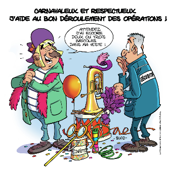 La Ville et les associations carnavalesques n’ont qu’un seul but : préserver la tradition carnavalesque tout en assurant au maximum votre sécurité. Rappelez-vous que si toutes ces actions ont été mises en place, c’est pour vous permettre de faire carnaval. Alors acceptez les contrôles et gardez votre sourire.